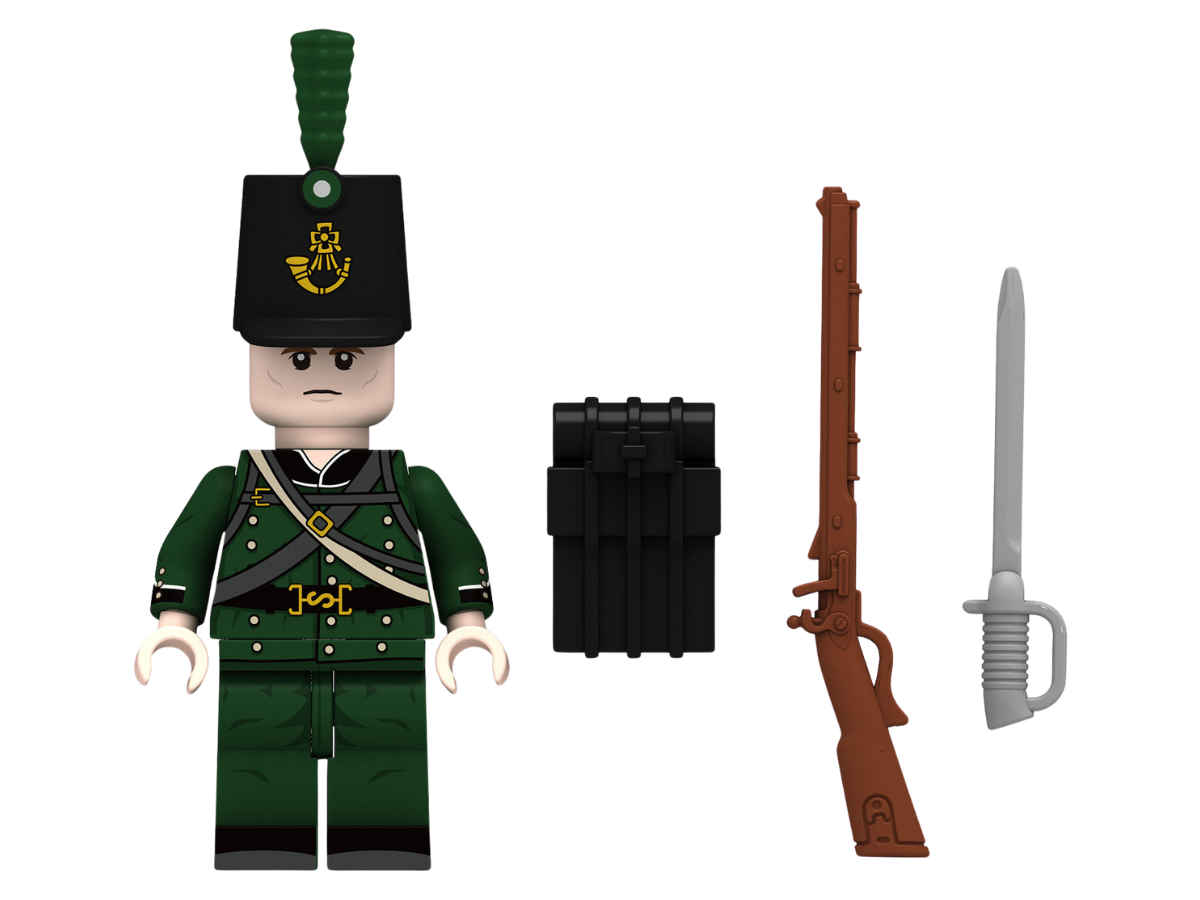 Stealth, skill, and precision—introducing the legendary 95th Regiment of Foot Rifles Trooper, known famously as the elite "Green Jackets." This meticulously detailed Mil-Fig honors the historic sharpshooters who revolutionized battlefield tactics with their camouflage uniforms and deadly accuracy. Perfect for re-enacting iconic skirmishes or enhancing your Napoleonic War collection, this Rifleman is a must-have for history enthusiasts and builders alike.